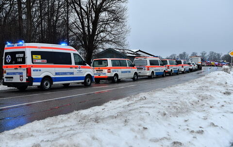 Heute Morgen trafen sich über 500 Einsatzkräfte von Feuerwehr, DLRG, Wasserrettung aus Österreich und des THW bei der Feuerwehrstation in Übersee. Dort wurden die Kräfte zu ihren Einsätzen nach Schleching und Reit im Winkl verteilt.