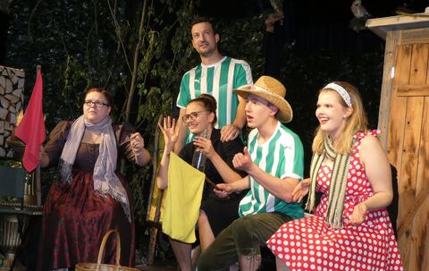 Die Junge Chiemseer Bühne Grabenstätt zeigt noch viermal die bayerische Komödie „Fuaßball Kini“. Die Premiere kam sehr gut an.