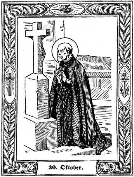 Alphons Rodriguez wurde 1531 zu Segovia in Spanien geboren. Von Jugend an zeigte er große Herzenseinfalt, Liebe zur Reinheit und Demut und eine kindliche Verehrung der Mutter Gottes. Nach dem Wunsche seiner Eltern trat er in den Ehestand und übernahm ihr Kaufmannsgeschäft. Dabei ließ er im Streben nach Frömmigkeit nicht nach und behielt inmitten aller seiner Arbeiten und Sorgen das ewige Ziel im Auge. Der Tod entriss ihm nacheinander die Gattin und seine zwei lieben Kinder. Nun sah er die Hinfälligkeit alles Irdischen noch mehr ein, beriet sich mit seinem Beichtvater und trat nach Überwindung vieler Schwierigkeiten im Alter von 40 Jahren 1571 zu Valtentia in den Jesuitenorden als Laienbruder. Er besorgte die häuslichen Geschäfte, speziell den Dienst eines Portners bis zum Tode und wurde bald das Vorbild für die Laienbrüder und alle arbeitenden Stände in jeder Tugend, besonders in Demut und Einfalt, Liebe zur Armut. In Abtötung und Geduld, in Arbeitsamkeit, im sogenannten blinden Gehorsam, in Höflichkeit und Ehrerbietung. Dabei hatte er seine Gedanken stets auf Gott gerichtet. Nach einer dreitägigen Entzündung starb der fromme Ordensmann den 31. Oktober 1617 im Alter von 86 Jahren auf der Insel Majorka. Weil er im Leben und nach dem Tode durch Wunder von Gott verherrlicht wurde, so erfolgte seine Seligsprechung durch Papst Leo XII. 1825 und seine Heiligsprechung durch Papst Leo XIII. am 15. Januar 1888. Als sein Verehrungstag wurde der 30. Oktober bestimmt.