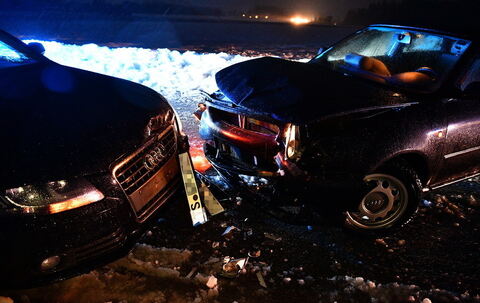 Audi kommt ins Rutschen - Frontalzusammenstoß