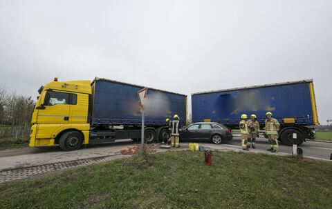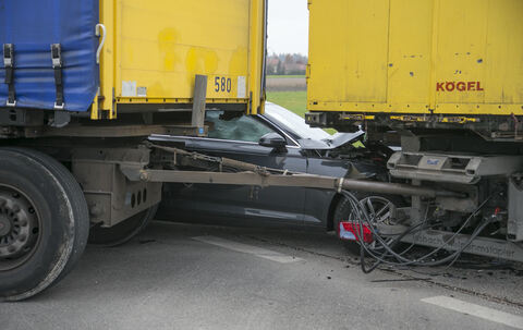 Gegen 13.30 Uhr ereignete sich ein Verkehrsunfall auf der B20 bei Fridolfing. Ein LKW aus dem Landkreis Fürstenfeldbruck war von Laufen in Richtung Tittmoning unterwegs und wollte bei Fridolfing nach Links Richtung Dietwies/Fridolfing abbiegen. Ein Audi A4 aus dem Landkreis Berchtesgaden, der in die gleiche Richtung unterwegs war, überholte zu diesem Zeitpunkt eine Kolonne mit mehreren Fahrzeugen und übersah dabei, dass der LKW abbiegen wollte. Da der Audi Fahrer nicht mehr rechtzeitig zum Stehen kam, krachte er unter den LKW. Glücklicherweise wurde bei dem Unfall niemand verletzt. Die B20 wurde für die Dauer der Unfallaufnahme durch die Polizei und die Bergung des Audis komplett von der Feuerwehr gesperrt.