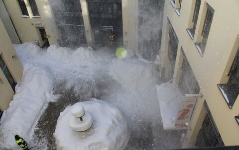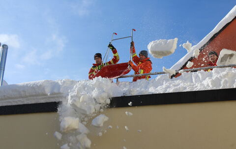 Feuerwehr befreit Traunsteiner Rathaus vom Schnee