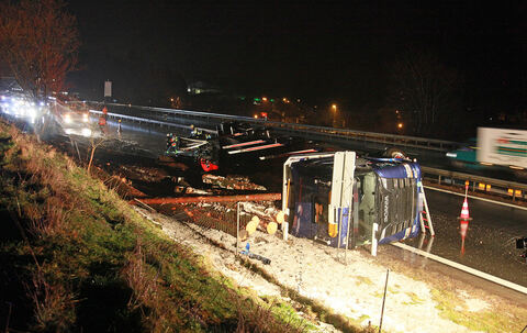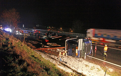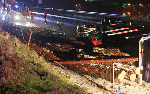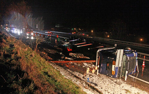 Mediengalerien BGLHolztransporter kippt auf der A8 bei Piding um Ticker zum Schneechaos: Holztransporter kippt auf A8 bei Piding um – Fahrer verletzt