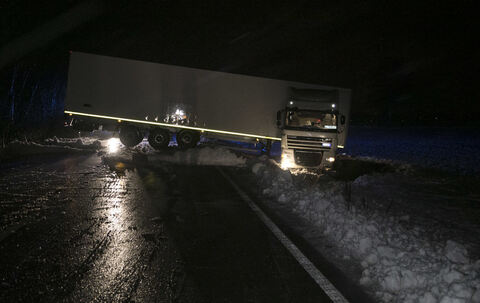 LKW kommt von der B20 ab zwischen Fridolfing und Tittmoning