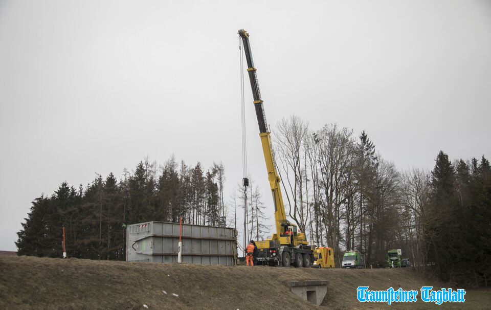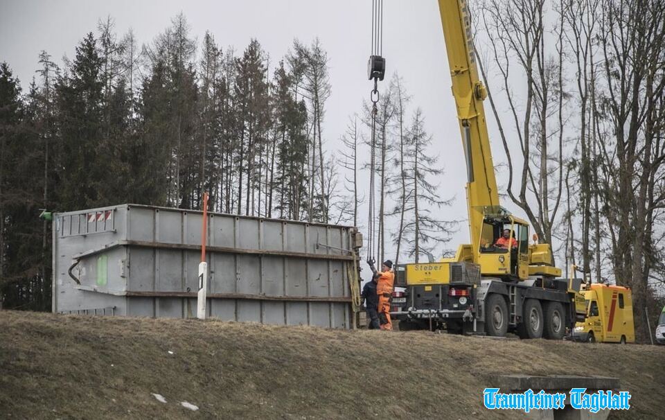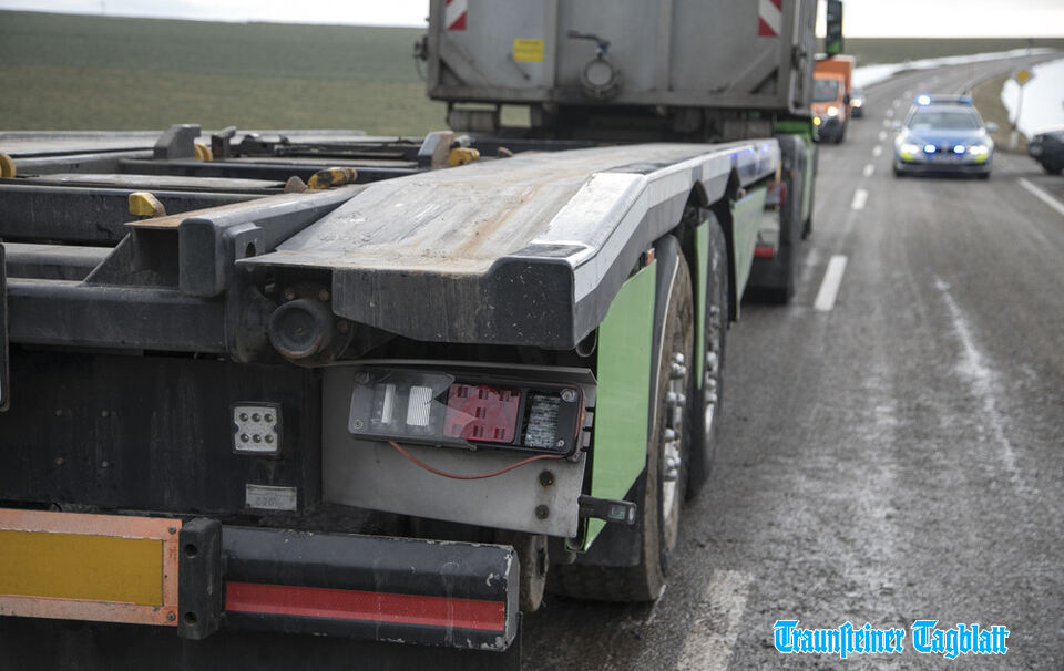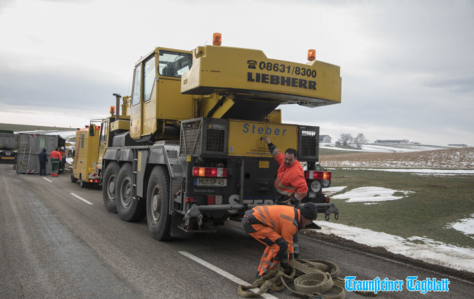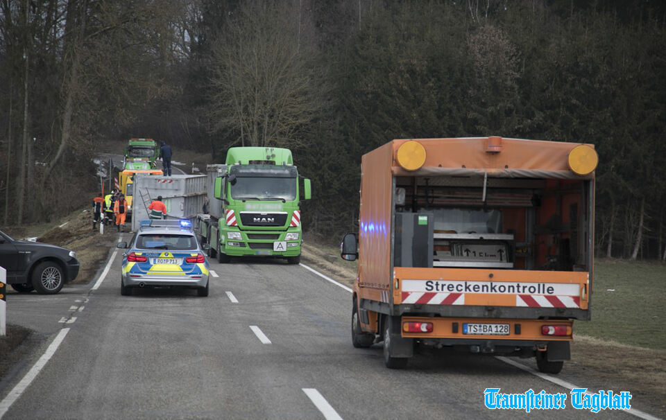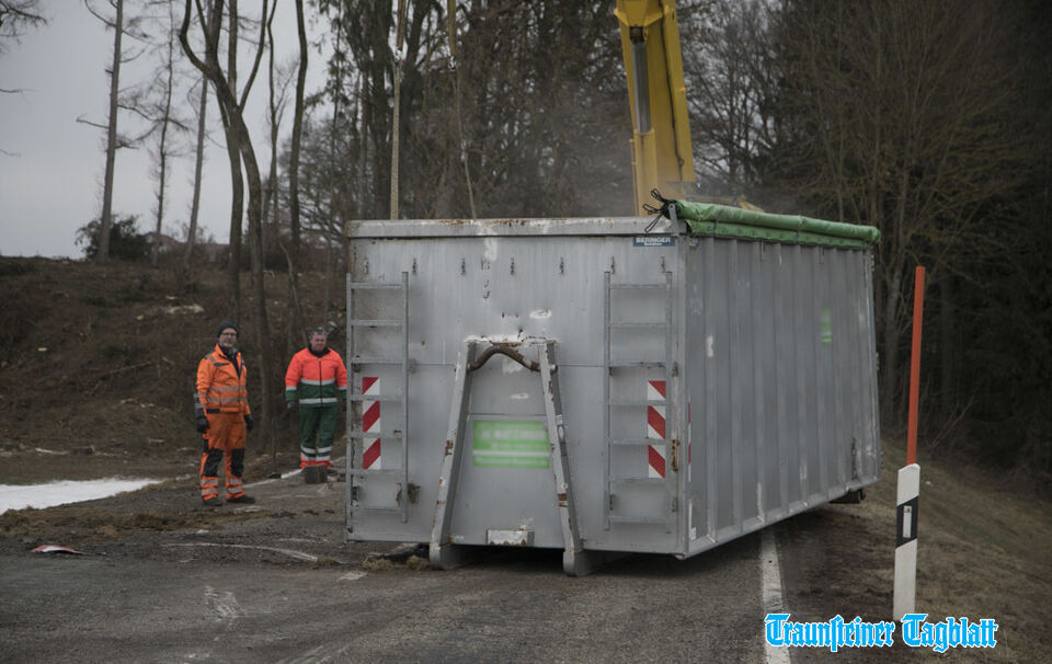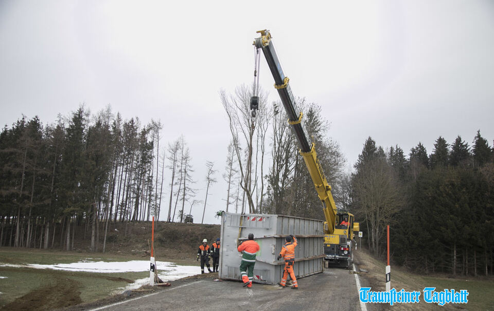 Lkw-Anhänger mit Pferdemist kippt bei Peterskirchen um