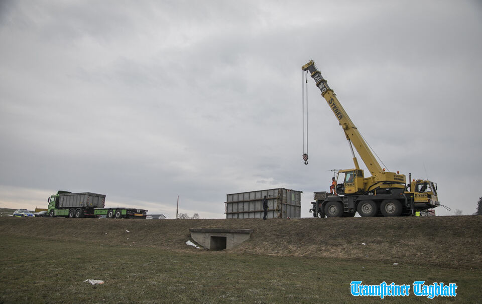 8 / 20Eine schmutzige Arbeit hatten die Einsatzkräfte der Feuerwehr Peterskirchen am Freitagvormittag nach einem Lkw-Unfall bei Tacherting: Ein mit Pferdemist beladener Container war von seinem Anhänger auf die Straße gefallen. (Foto: FDL/Lamminger)