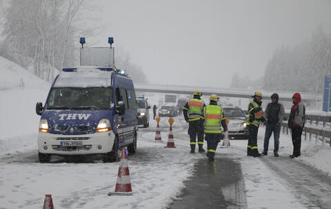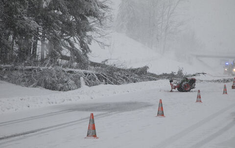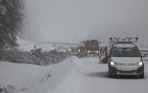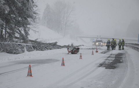 Schneebruch, gesperrte Straßen, gesperrte Autobahn
