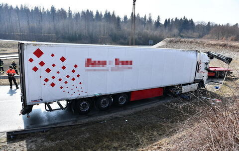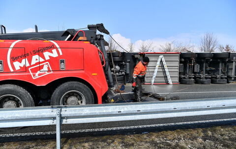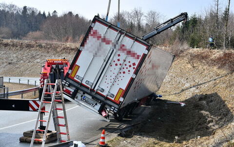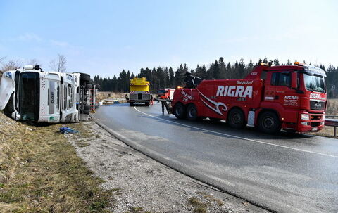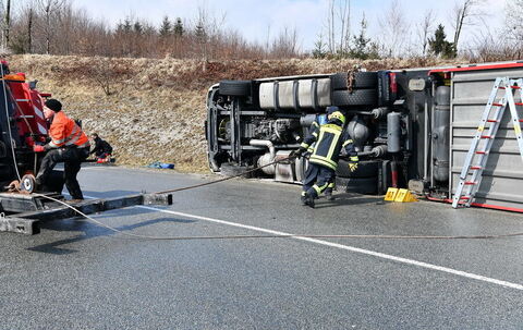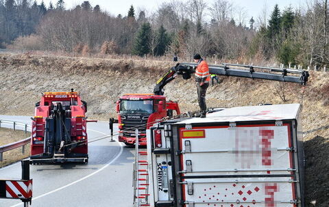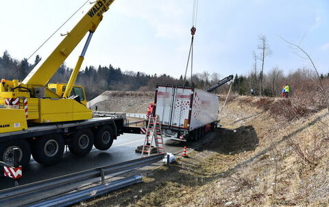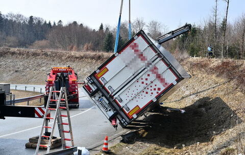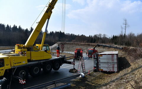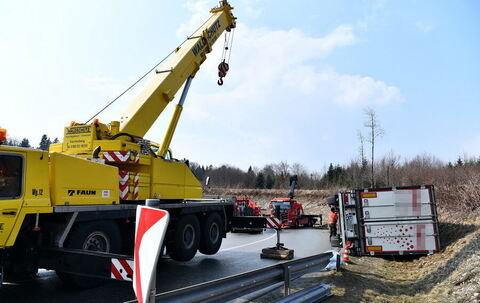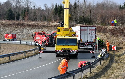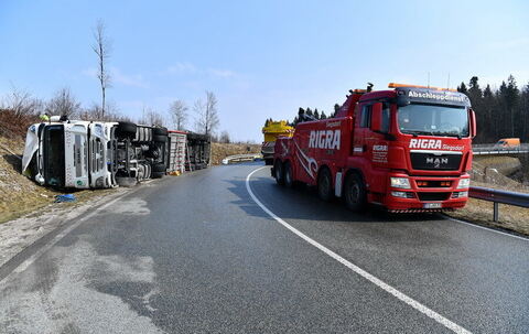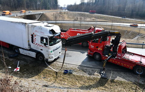 Mediengalerien BGLSpezialfirmen bergen umgekippten Lkw bei Traunstein Nord Zum Artikel: Bergung des Kühllasters in Traunstein Nord