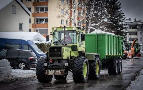 Da es für die Mitarbeiter des Städtischen Bauhofes in Traunreut unmöglich ist, gegen die vorherrschenden riesigen Schneemassen in der Stadt alleine anzukämpfen, hat man alles mobilisiert was aufzutreiben war. Derzeit versucht man mit Hochdruck, Hauptstraßen aber auch viele Nebenstraßen mit Schneefräsen von den Bergen an Schnee zu befreien. Für viele Anwohner, speziell in Wohngebieten mit schmalen Zufahrtsstraßen wie an der Münchner Str. ist es kaum mehr möglich seine Wohnung mit dem PKW zu erreichen. Für diese Aufgaben wurden zur Unterstützung der Städtischen Mitarbeiter, die seit einer Woche fast rund um die Uhr im Einsatz sind, Lohnunternehmen und Landwirte mit Ihren Traktoren beauftragt. Statt auf den Winterdienst der wie hier in der Münchner Str. hart am Arbeiten ist zu schimpfen, liefen Anwohner mit Kaffee und Gebäck umher um die Arbeiter zu versorgen. Eine tolle Geste.