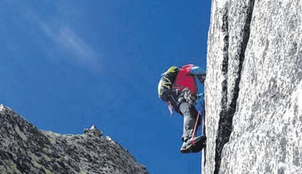 Am Samstag ging's um 6.30 Uhr los. Im Gepäck hatten wir 60 Meter Seil, etliche lange Schlingen, Expressen, Friends, Pickel, Steigeisen, ein Liter Apfelschorle und ein paar Bissen zum Essen. Das musste den ganzen Tag reichen. Zum Einstieg auf gut 3000 Meter Seehöhe führten uns zwei Stunden lang über weitläufiges Blockwerk nur Steinmandln – bei Nebel unmöglich zu finden. Aber es war einfach ein perfekter Tag: ein herrlicher Sonnenaufgang, azurblauer Himmel und angenehme Temperatur.
