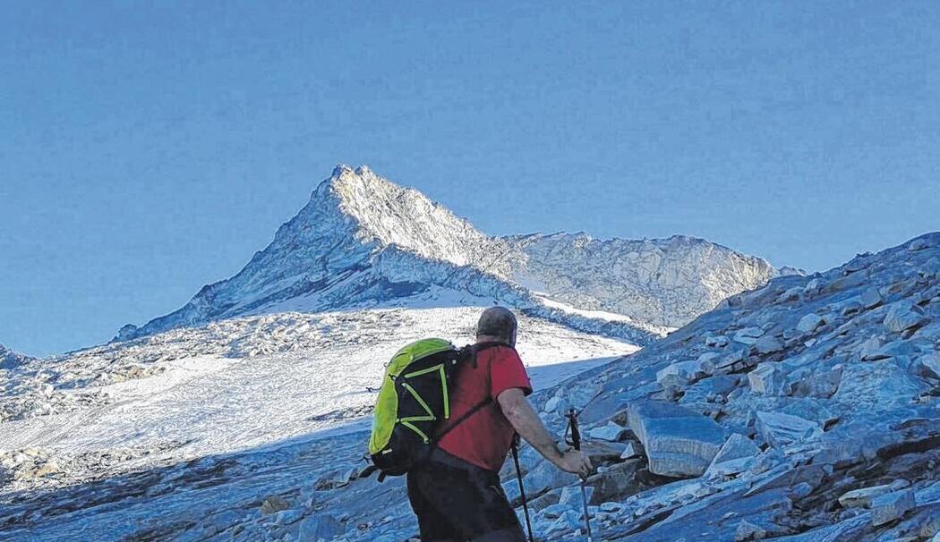 Dann hat mich vor ein paar Wochen mein Schwager Fritz Riegel angerufen, seines Zeichens Zimmerermeister und Bergführer aus Bayrisch Gmain. »Hans, wos moanst, zwengstn Turnerkamp?« Meine Antwort: »Guat, i schau, dass i weg kimm. Desmoi pack’ m’an.« Und zwar von Süden. Fritz Riegel schlug den Südgrat vor, den schwierigsten von den drei Graten. Am 28. August fuhren wir los. Unser Ziel war das Südtiroler Ahrntal, hinauf zum Nöfes-Stausee auf 1800 Meter. Die erste Wegstunde zur Nöfesjoch-Hütte (»Alte Chemnitzer« auf 2420 Meter) sind wir hinauf geradelt, weil es abwärts mit den schweren Rucksäcken knieschonender ist. Ganz so jung sind wir auch nicht mehr. Von der schön gelegenen Alm war es noch eine halbe Stunde zu Fuß. Die Wirtsleute sind gastfreundlich. Wir wurden per Handschlag begrüßt und nach unseren Zielen befragt, Essen und Weinkeller tiptop.