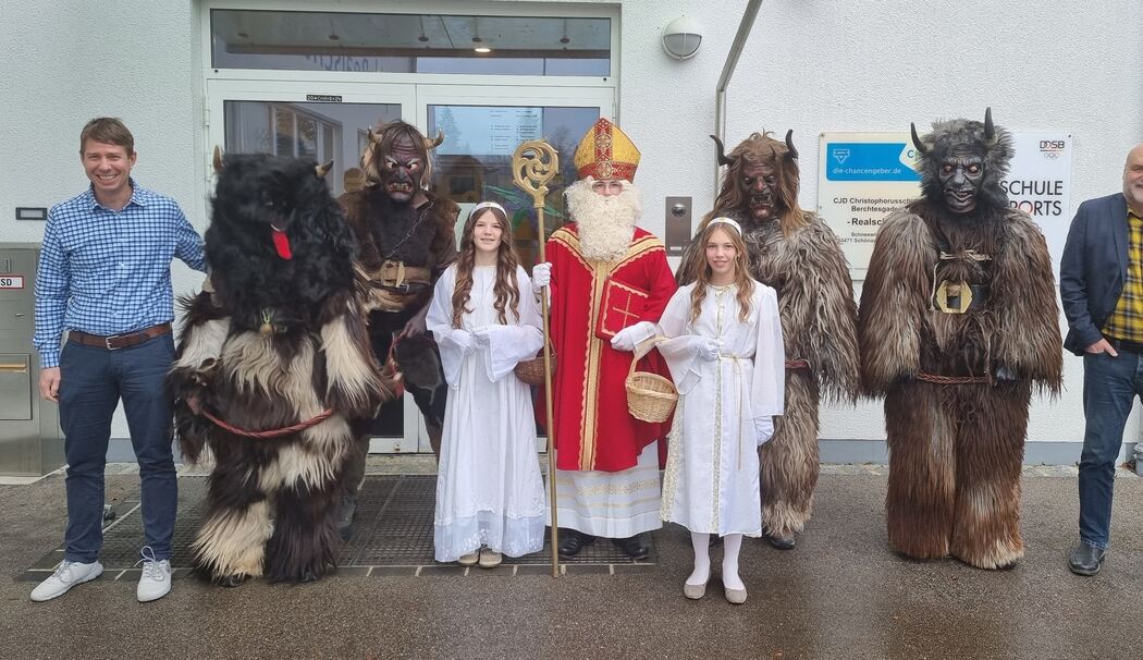 Wie bereits in den vergangenen Jahren verhielten sich die »wilden Gesellen« in seiner Begleitung auch diesmal rücksichtsvoll und an die schulische Umgebung angepasst. Dennoch haben einige vorwitzige Schülerinnen und Schüler etwas Ruß von den Kramperln abbekommen. fb