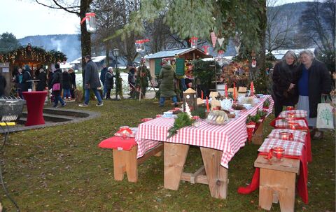 Unter den zum Verkauf angebotenen Dekoartikeln waren auffallend viele, sehr schön gestaltete Holzarbeiten, darunter Weihnachtslichter, Holzwichtel, Sterne, Tannenbäume, Herzen und Kerzenständer. Filzkasperl, selbstgestrickte Wollsocken und Mützen, Zirbenkissen und vieles mehr komplettierten das Angebot. Auch kulinarische Spezialitäten wie Weihnachtsplätzchen, Marmeladen, Senf, Likör und Speck warteten auf Abnehmer.