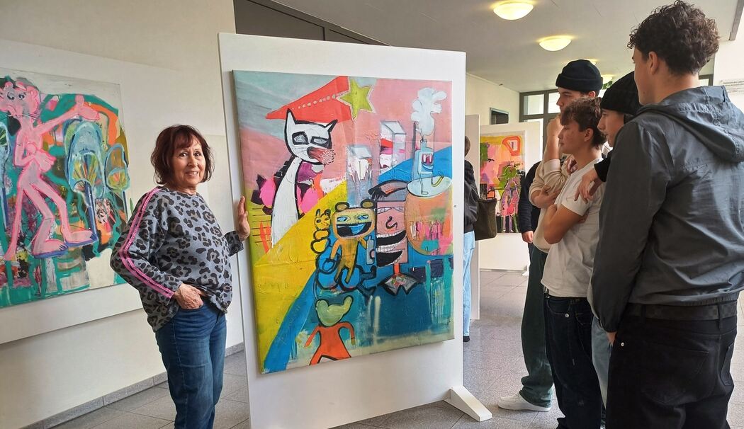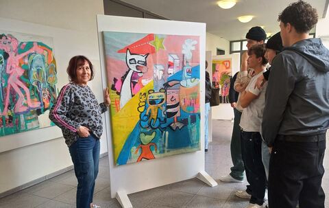 Angela Sans zeigt ihre farbensprühenden Werke in der Schule Dr. Kalscheuer in Traunstein