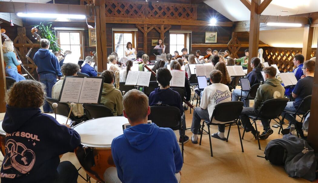 Im Saal im Heißenhof in Inzell probt das Chiemgau Jugendsymphonieorchester während den Herbstferien zweimal täglich und bereitet sich bestens auf die bevorstehenden Auftritte vor. (Foto: Wegscheider)