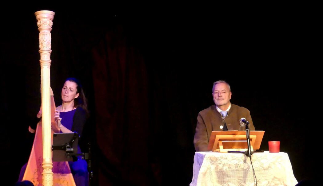 Bereits zum zwölften Mal in Folge haben die Weltklasse-Harfenistin Silke Aichhorn und der Radiosprecher, Autor und Musikwissenschaftler Dr. Martin Fogt in der stets vollbesetzten Traunsteiner Kulturfabrik NUTS ihre beliebten »Christmas Crackers« serviert. Meist amüsante, aber auch besinnliche Geschichten rund um Weihnachten, umrahmt von passenden Melodien wie Albert Zabels »Gretchen am Spinnrad«.