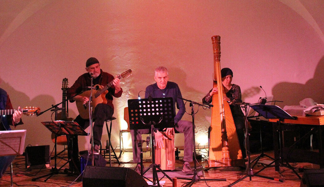 Gänsehautgefühl unter altem Gewölbe: Zwei gut besuchte Benefizkonzerte des »Trio SurMonte« und des Duos »Carovana Mediterranea« zusammen mit Harfenistin Maria Wadispointner im O.R.T., dem »Offenen Raum« an der Traunerstraße in Traunstein, erbrachten eine vierstellige Summe für die Kinderkrebshilfe Berchtesgadener Land und Traunstein