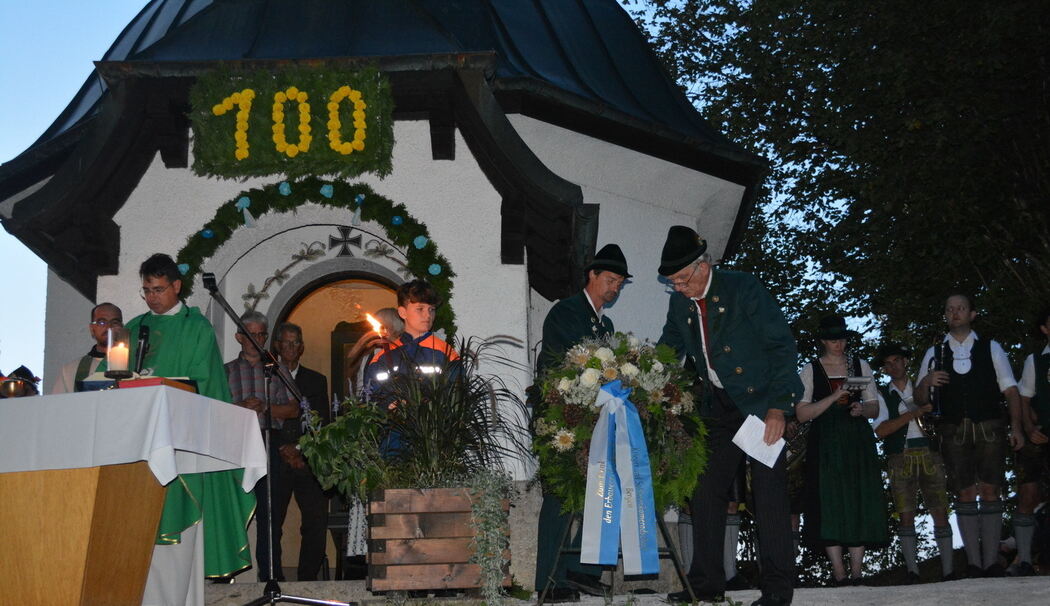 Zunächst formierten sich die Mitglieder der KSK Bergen, des Patenvereins aus Grabenstätt und der KSK Vachendorf sowie die Vertreter der Ortsvereine mit ihren Fahnenabordnungen zu einem großen Kirchenzug, der von der Blaskapelle Bergen angeführt wurde. An der Kapelle war alles für einen Festgottesdienst vorbereitet. Pfarrer Pater Vasile Dior hob die besondere Bedeutung der Kriegerkapelle als