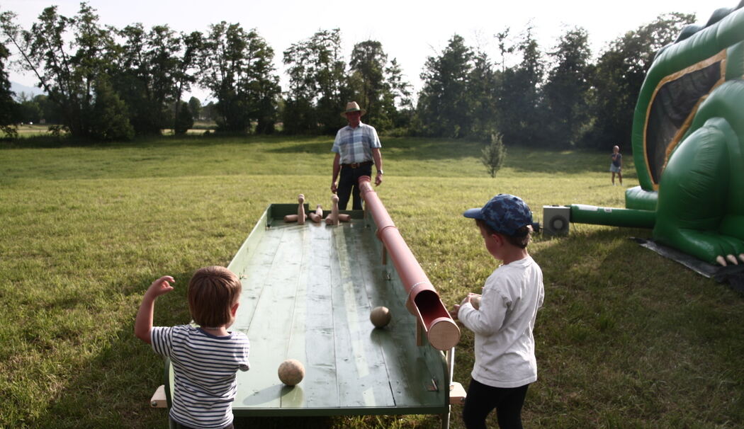 Für Unterhaltung sorgte der Musikverein mit 25 Bläsern unter Leitung von Hans Schnell mit einer Mischung von Boarischen Märschen, Polkas und Walzern sowie moderner Unterhaltungsmusik von »Italo Hits« bis »We will entertain you«. Den Kindern hatte Alfred Steiner (Kötzinger Austragsbauer) und Wolfgang Kirchmeier (Senior von der Chieminger Fischerei) eine Holz-Kegelbahn nach alten Mustern gebaut,