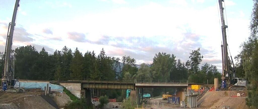 Eine Baustelle eingerichtet hat die Deutsche Bahn (DB) auf der Eisenbahnstrecke München-Salzburg zwischen den Bahnhöfen in Übersee und Bergen: Die DB InfraGo, ein Tochterunternehmen ...