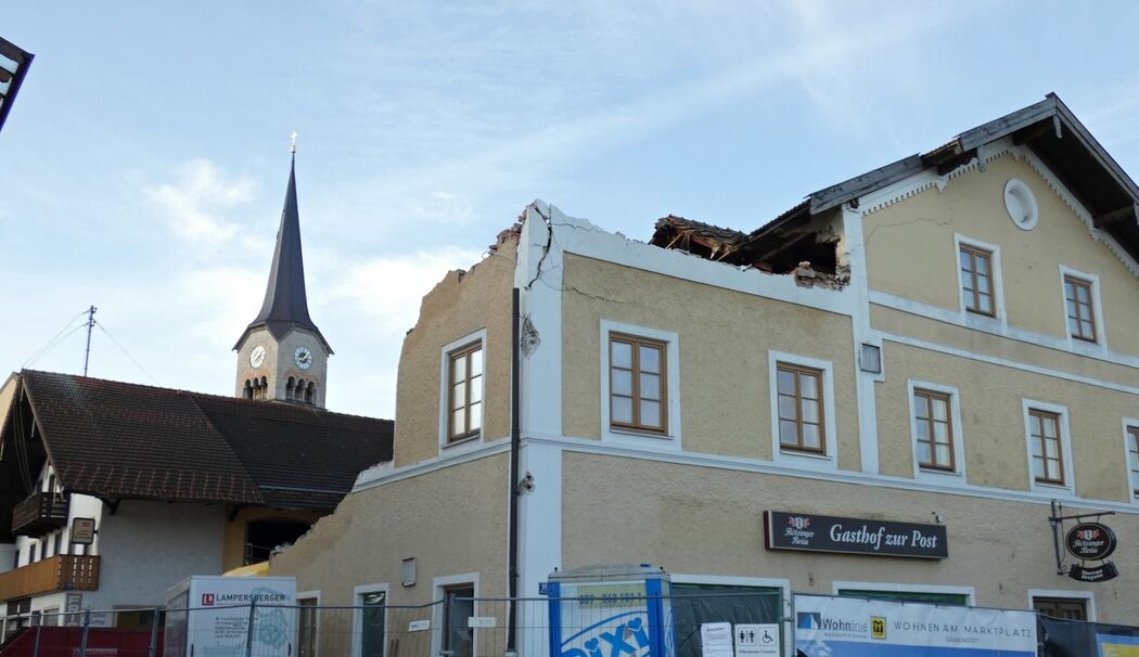 Grabenstätt – Als der Abriss des alten Gasthofs zur Post am Grabenstätter Marktplatz vor knapp einen Monat begonnen hatte, dachten alle, dass das Gebäude relativ zügig beseitigt sein wird. Tatsächlich folgte dann aber an den ersten Tagen allein der Abbruch des südöstlichen Gebäudeteils.