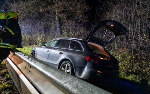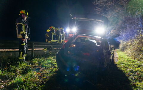 Auf Höhe des Weilers Hagenau kam der Fahrzeuglenker nach rechts von der Fahrbahn ab und prallte an einen Baum. Der Wagen fuhr noch circa 50 Meter weiter, wo er dann hinter einer Leitplanke zum Stehen kam.