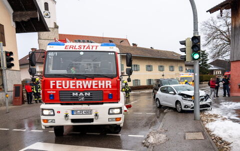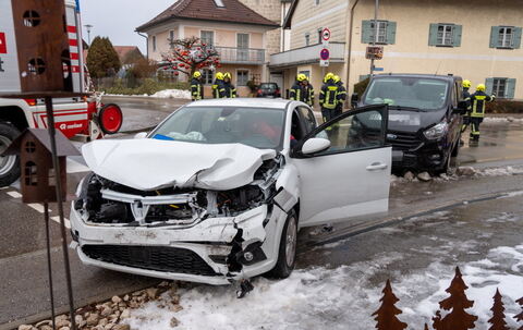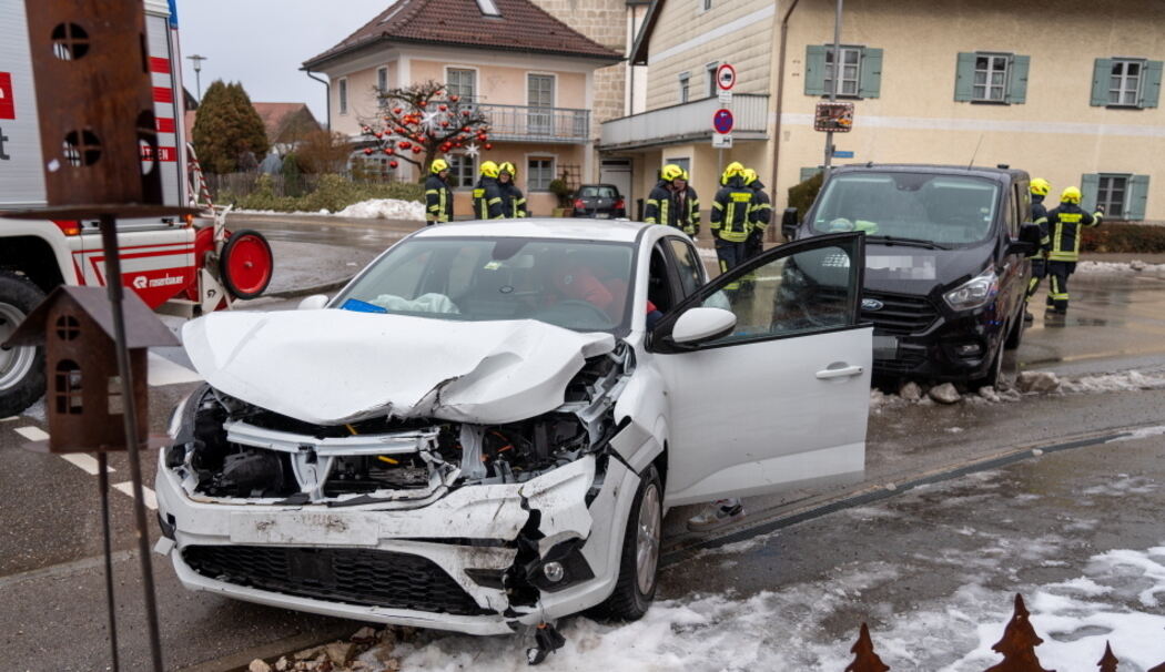 Der Fahrer eines Kleintransporters wollte nach ersten Informationen vom Einsatzort von der Raiffeisenstraße kommend nach rechts auf die Grabenstätter Straße abbiegen. Von der gegenüberliegenden Römerstraße befand sich der Lenker eines Dacia ebenfalls im Abbiegevorgang nach links auf die Grabenstätter Straße. Der Dacia-Fahrer über den Kleintransporter und es kam zum Zusammenstoß.