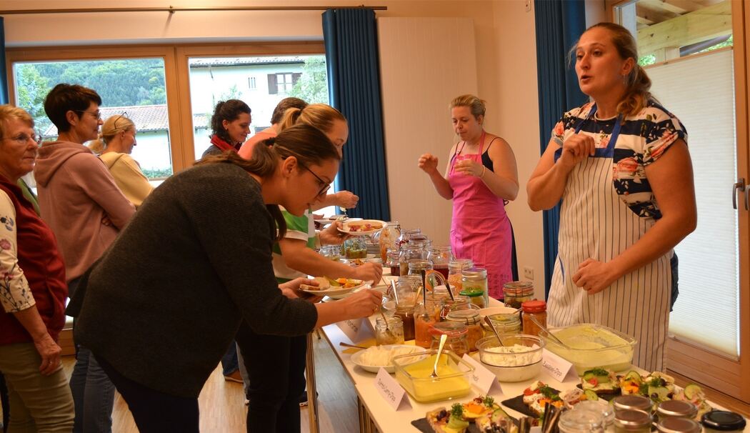 Der mehrstündige Kurs begann mit einer Verkostung. Kathi Stettner vom Gartenbauverein Rottau und Elfi Peters vom Gartenbauverein Grassau hatten hierfür einiges