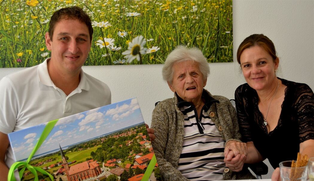 Grassau – Traudl Waschin feierte ihren 102. Geburtstag im Seniorenheim Grassau, wo sie sich seit acht Monaten wohlfühlt. Zu den Gratulanten gehörten die zweite Grassauer Bürgermeisterin Daniela Ludwig und Übersees Bürgermeister Herbert Strauch, die mit einem Geschenkkorb, einer Grassauer Ortschronik sowie einer Luftbildaufnahme ihrer Heimatgemeinde Übersee aufwarteten.