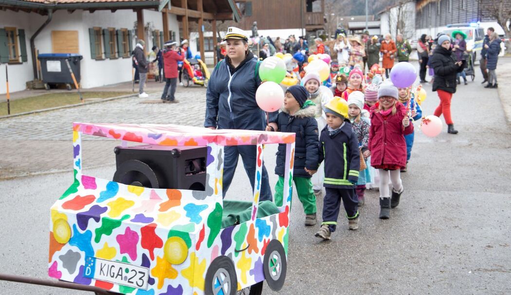 Inzell – Mit einem kunterbunten Faschingsumzug sorgte am gestrigen Freitag der Kindergarten St. Michael in Inzell für eine fröhlich-lustige Stimmung im Dorf, trotz dem teils regnerischem Wetter.