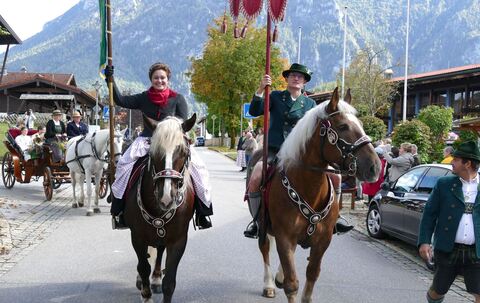 Am Nachmittag bei durchwachsenem Herbstwetter zogen 101 Pferde mit ihren Reitern auf dem Rücken und 14 eingespannt in insgesamt zwölf Festwagen oder Festtagskutschen beim traditionellen Michaeliritt durch den Ortskern von Inzell bis zum Feuerwehrhaus und wieder zurück. Pfarrer Weinzierl segnete dort die vorbeiziehenden Pferde mit ihren Reitern und die vorbeifahrenden Gespanne.