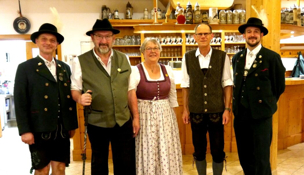 Zwischen den einzelnen Aufführungen führte zweiter Vorstand Andreas Felber durch das Programm und erläuterte die verschiedenen Darbietungen. Vorstand Andreas Heidenthaler nutzte die Gelegenheit, den Teilnehmern, die am Gaujugend-Preisplattln in Saaldorf mitgewirkt hatten, mit einem Abzeichen zu danken. Dies waren Lena Roider (zum ersten Mal dabei), Christine Hofmeister und Anna Obermayer. Auch gratulierte er Christa und Georg Huber nachträglich zur Goldenen Hochzeit und überreichte ein kleines Geschenk. Außerdem ehrte er die beiden für 50-jährige aktive Mitgliedschaft. Hannes Wagner wurde für seine 30-jährige Vereinstreue geehrt. Zwischendurch spielten immer wieder die Vereinsmusikanten auf. Bevor die Trachtenjugend die nächsten Tänze – Dätscher, Webertanz und Sternpolka – darboten, plattlten die Aktiven Buam den Lamberger, gefolgt von den Aktiven mit dem Dreisteierer. Ganz schön aufgeregt waren die jungen Buam, als sie gemeinsam mit den Aktiven den Heisei plattlten. Den letzten Block füllten nach der Pause die jüngsten Trachtler mit der Krebspolka, anschließend kamen die Olympiapolka sowie das Birkenstoaner Glöckerl als Plattler. fb