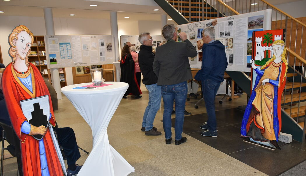 Der Bürgermeister bedankte sich bei den Mitgliedern des Beirats für Kultur und Bildung Claudia Riess, Birgit Bader, Siegi Götze und Michi Elgass, die mit viel Engagement und Herzblut interessante Informationen, Gemälde, alte Postkarten und Gegenstände zur Burg zusammengetragen haben.
