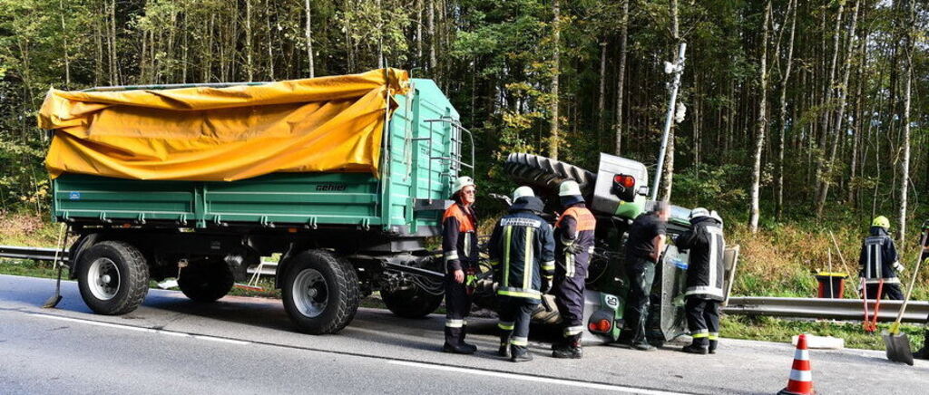 Altenmarkt – Leicht verletzt wurde ein Traktorfahrer am Donnerstagmorgen auf der B304 kurz vor Kirchberg, als sein Gefährt nach einem Gegenlenkversuch seitlich umkippte.