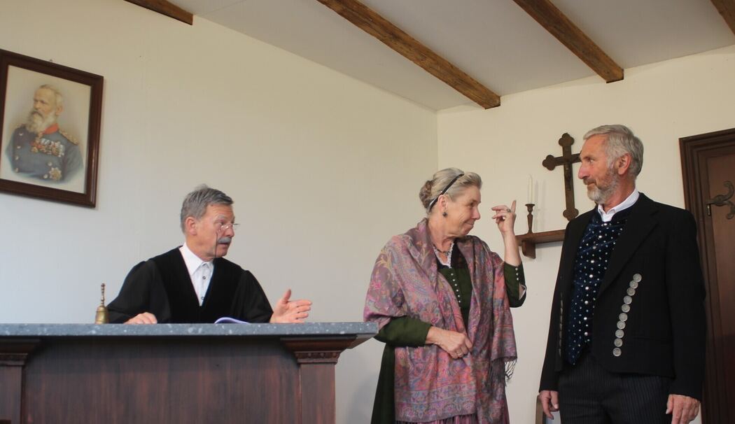 Nußdorf – Gerichtsszenen aus dem Königlich Bayerischen Amtsgericht spielt die Theatergruppe des Trachtenvereins Nußdorf ab 30. August auf der Freiluftbühne am Nußdorfer Dorfplatz. Fünfmal werden jeweils zwei Einakter mit den Titeln »Der Fünfer« und »Der Erbonkel« gespieltund damit an jedem Spieltag zwei Anklagefälle öffentlich verhandelt. Das Publikum darf sich auf unterhaltsame Szenen freuen.