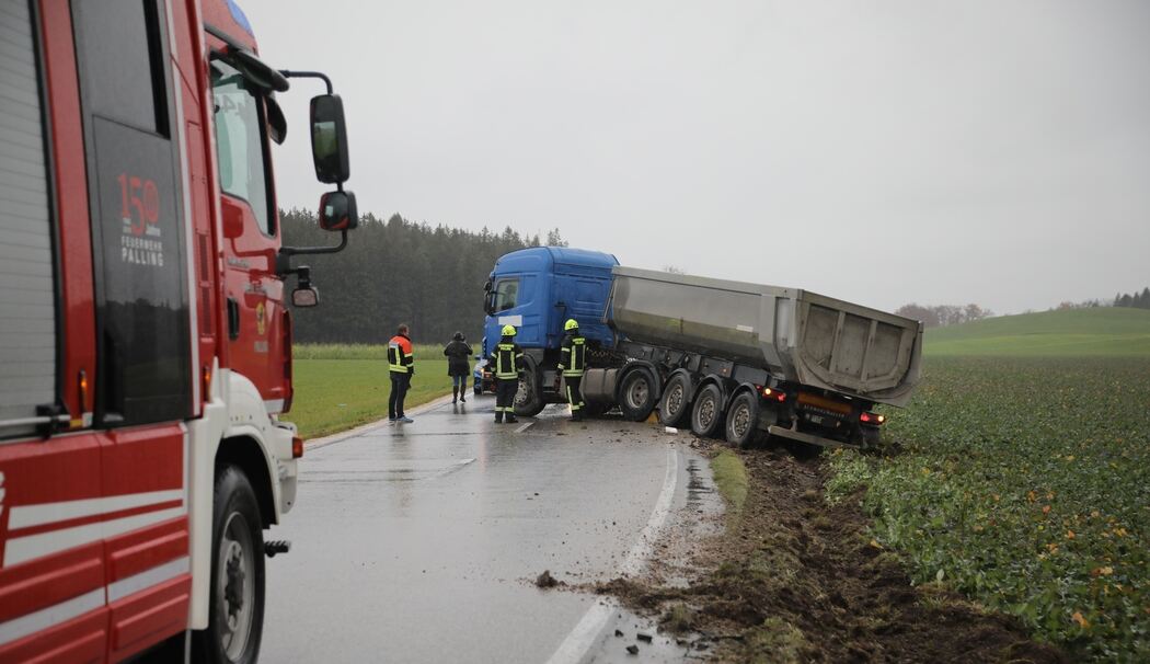 Die Feuerwehr Palling wurde am Dienstag gegen 11.20 Uhr zur Sperrung der Staatsstraße 2093 alarmiert. Kurz nach Unterhafing in Fahrtrichtung Wiesmühl ist ein Lkw nach einer Linkskurve von der Fahrbahn abgekommen und zum Teil in einem Feld steckengeblieben. Der Lkw ist mit Kies beladen und muss vermutlich vor einer Bergung erst einmal mit einem Bagger umgeladen werden. So lange wird die Straße dort gesperrt bleiben.