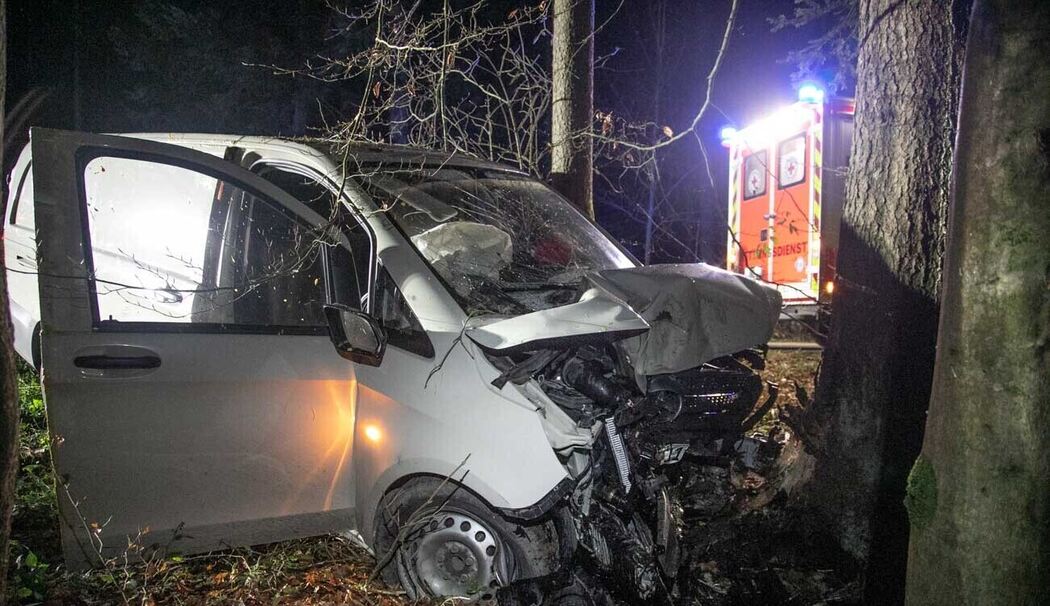 Ein Mercedes Vito Kastenwagen fuhr von Palling in Richtung Stein, kam im ersten Waldstück nach rechts von der Fahrbahn ab und krachte frontal gegen einen Baum. Nachfolgende Autofahrer blieben stehen und kümmerten sich um den Verletzten.