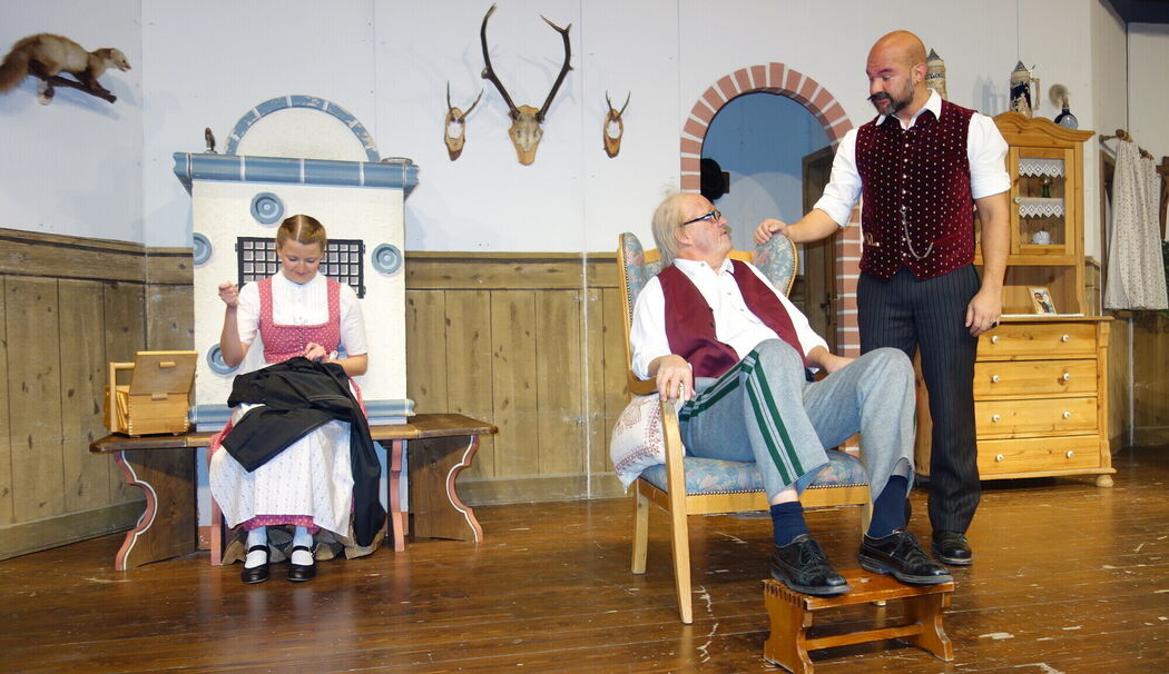 »Wir reisen heute zurück in der Zeit der 30er-Jahre des vergangenen Jahrhunderts und stellen einen alten Klassiker auf die Bühne«, stimmte die Regisseurin das zahlreiche Publikum auf das Stück ein. Dazu passend gab es lustige Gesangseinlagen von drei Männern, die in der damaligen Tracht gekleidet waren. Auch die drei jungen Burschen der neu-formierten Theatermusi traten entsprechend mit traditionellen Melodien auf.