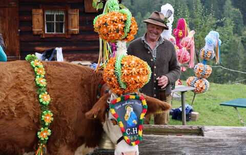 Wenn beim Almsommer alles gut gegangen ist in der Familie und bei den Tieren keines krank geworden oder gar tödlich abgestürzt ist, dann kann der festliche Schmuck für die Tiere angelegt werden, die Kronen, Kreuze, Daxnboschen und Wistlbam. Die Tiere, die den Almabtrieb am Ende des Sommers schon kennen, tragen den Schmuck mit Stolz und sie freuen sich auf die noch fetten Wiesen am heimischen Stall im Tal.