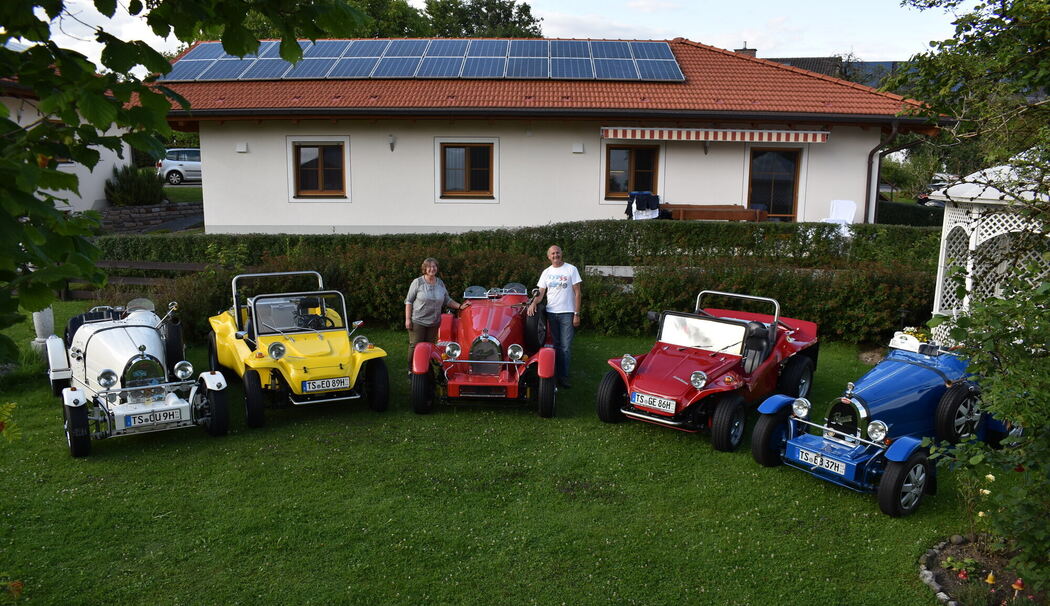 Evi Oberlohner betont im Gespräch mit dem Traunsteiner Tagblatt, dass sie ihren »Schorsch« bei seinem Hobby immer unterstützt habe. »Wenn er in der Garage war, wusste ich, wo er ist – und ich war beruhigt«. Seine Begeisterung fürs Werkeln entdeckte der Seebrucker schon als Kind: »Die Schrauberei war immer schon eine Leidenschaft, mein Vater hat mich inspiriert, der hat in seinen jungen Jahren einen echten Heuwagen aus Holz gebaut, das hat ihm keiner zugetraut«, sagt der 60-Jährige. Aber er sieht auch: »Die Generation der Schrauber stirbt aus.« Für den Diakon ist das ein toller Ausgleich. »Beim Schrauben kann ich abschalten. Das ist bis heute so.« Ungewöhnliche Autos haben den Seebrucker schon immer fasziniert. Doch er wollte nicht einfach einen Oldtimer kaufen, er wollte kreativ sein. »Die Mechaniker haben mir damals abgeraten, sagten mir: 'Was willst du denn mit so einer Plastikkarre? Kaufe dir lieber einen Echten.' Doch ich habe anders entschieden«, blickt Oberlohner zurück. Neben den drei Repliken des Bugatti 35 hat der Seebrucker auch zwei VW-Buggys zusammengeschraubt.