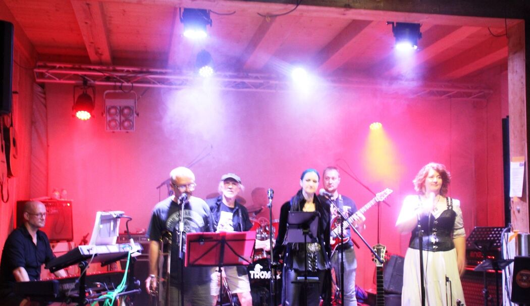 Seeon-Seebruck – Etwa 140 Besucher kamen zur »Summer-Rock-Party« auf dem alpes-tonewood-Gelände von Hans Gastager im Gewerbegebiet. Drei Rockgruppen, Solisten und ein Gitarren-Duo sorgten für ein buntes Programm auf zwei Bühnen und danach am Lagerfeuer.