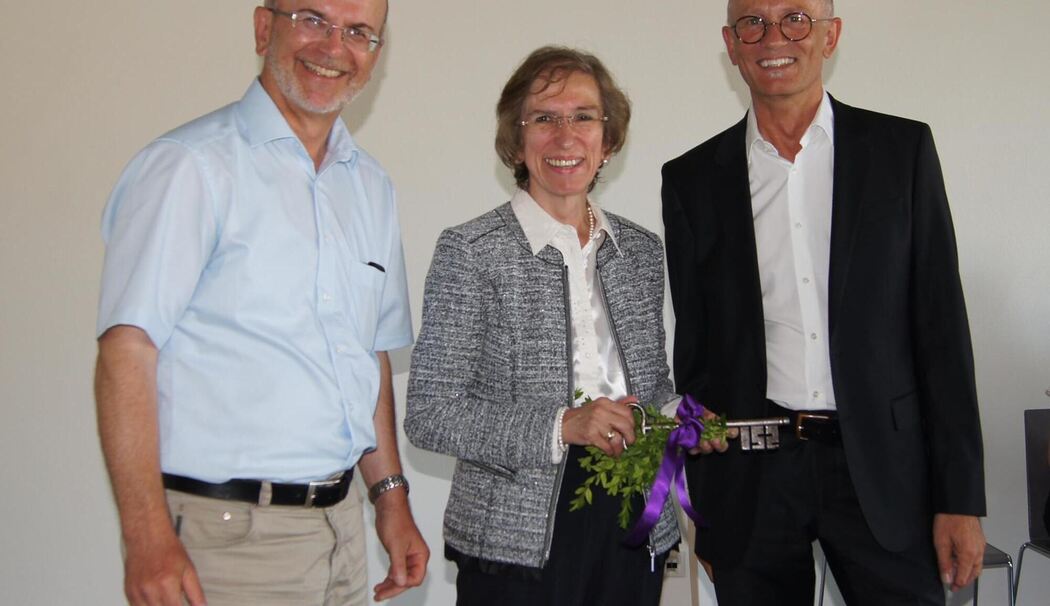 Geschäftsführerin Annemarie Funke dankte allen, die am Bau beteiligt waren, und nahm von Franz Blüml vom gleichnamigen Planungsbüro symbolisch den Schlüssel in Empfang. Blüml freute sich über das gelungene Vorzeigeprojekt. Er wünscht sich, »dass es ein Gebäude ist, in dem sich jeder wohlfühlen kann, das mit Leben gefüllt wird und mit Freude«.