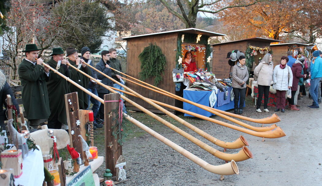 An Marktbuden werden verschiedene Produkte, wie Glaskunst, Filzarbeiten, Stick-sachen, Schmuck, Keramik, Holzprodukte, Honig, Bienenwachs und vieles mehr angeboten. Darüber hinaus können auch Christbäume gekauft werden. Für das leibliche Wohl ist ebenfalls bestens gesorgt. Bürgermeister Martin Bartlweber wird den Markt am Samstag um 16 Uhr mit den Truchtlachinger Böllerschützen und den Alphornbläsern eröffnen. Am Sonntag erwartet die Besucher um 16 Uhr eine Aufführung der Kindergartenkinder. Anschließend wird noch der Nikolaus zu Besuch kommen. Der Erlös des zweitägigen Weihnachtsmarkts wird dann innerhalb der Gemeinde Seeon-Seebruck gespendet. ga