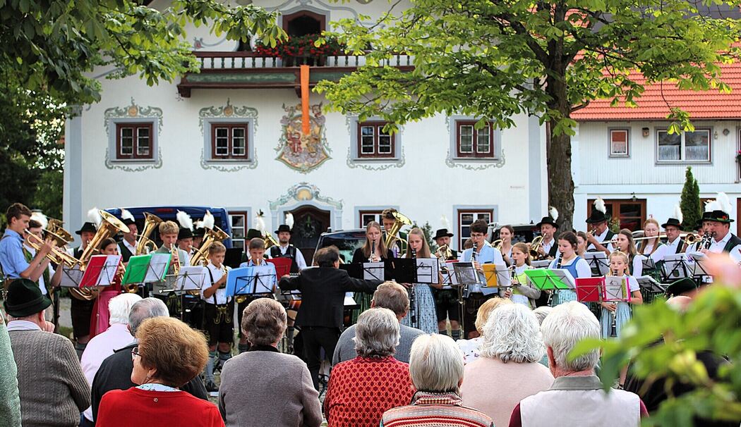 Nachdem wetterbedingt das erste Konzert am Ettendorfer Kircherl abgesagt worden war, konnte die Jugendkapelle unter der Leitung von Tamás Puskás und Bernhard Lackner nun vor der malerischen Kulisse des ehemaligen Surberger Wirtshauses ihr Können zeigen.