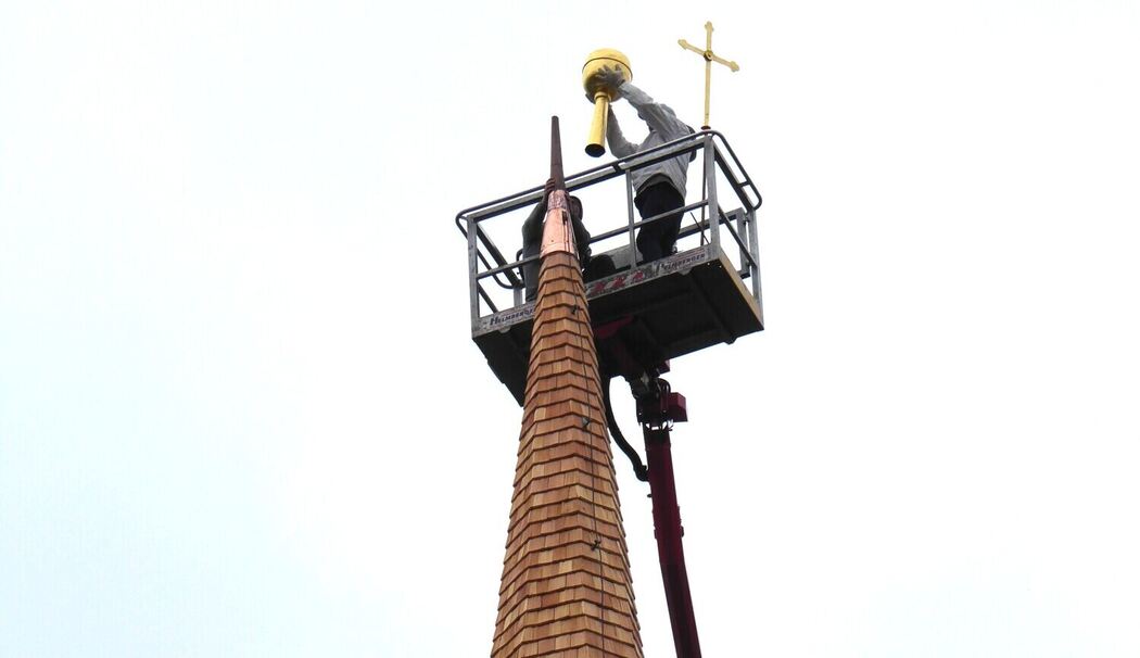 Taching am See – Zum ersten Mal seit knapp 50 Jahren hat die Kirchenverwaltung in Tengling nun am Turm von St. Coloman wieder Instandhaltungsmaßnahmen vorgenommen. Bereits in den vergangenen Jahren hatte sie festgestellt, dass die aus dem Jahr 1976 stammenden Lärchenschindeln bei Regen nicht mehr dicht sind. Mit der Erneuerung der Turmeindeckung beauftragte sie den Zimmerer Hans Prams aus Holzhausen (Stadt Tittmoning). Stefan Enzinger aus Weilham restaurierte das Turmkreuz samt Kugel.