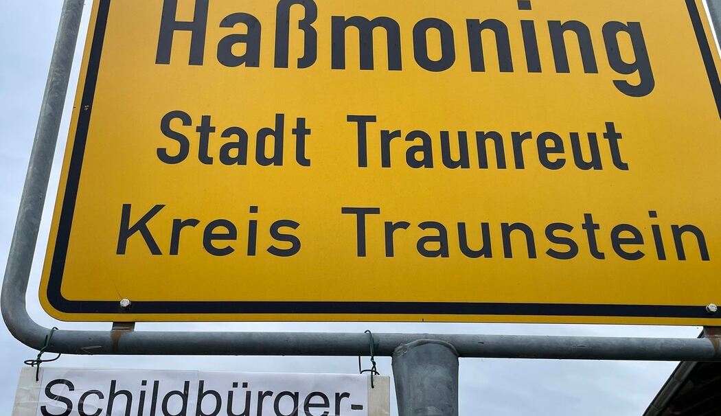 Traunreut – Am Ortsschild von Haßmoning hat jemand ein Zusatzschild »Schildbürgerstraße« angebracht. Andreas Piehler von der Bürgerliste, wohnhaft in Haßmoning, vermutet: »Offenbar gibt es eine Person, die vom politischen Einsatz der Haßmoninger für Tempo 30 dermaßen getriggert wird, dass sie sich zu so einer kindischen Aktion hinreißen lässt.«