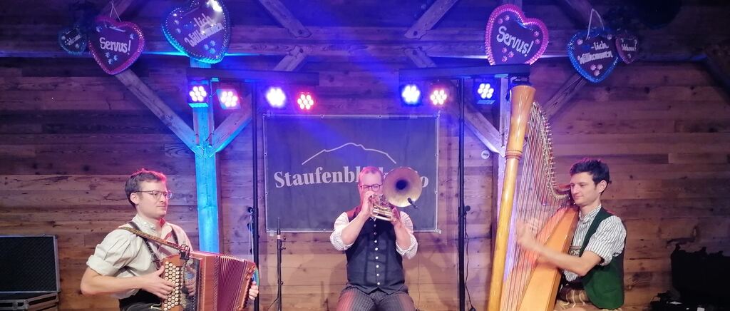 Traunreut – Zünftig und abwechselnd aufgs'puit haben das Staufenblick-Trio und die Musikanten der Sing- und Musikschule Traunwalchen auf der Traunreuter Kirta. Mit Blechblasmusik, ...