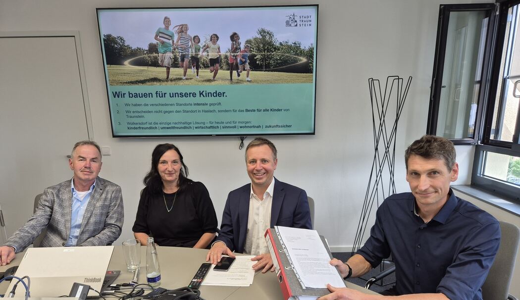 Traunstein – Den Plan der Stadt Traunstein, eine neue Grundschule möglicherweise in Wolkersdorf zu bauen, lehnen viele Bürger ab. In einem »offenen Brief« an die Verwaltung im Rathaus kritisiert Dr. Korbinian Rupprecht den drohenden Flächenverbrauch und schlägt als Alternative insbesondere vor, die Grundschule in Haslach zu erweitern (wir berichteten). Fast 300 Bürger haben seine Ausführungen und Forderungen in den vergangenen Wochen mit ihrer Unterschrift unterstützt. Zusammen mit Carolin und Andreas Humhauser hat Rupprecht nun den »offenen Brief« und die Unterschriften im Rathaus an Oberbürgermeister Dr. Christian Hümmer übergeben.