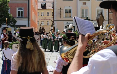 Angeführt vom Veitsgroma Fanfarenzug, mit Kindergarde, Garde und „Powerfrauen“ und dem Wagen der Zunft mit ihrer 1. Präsidentin Josefine Berny schlängelte sich der Gaudiwurm durch die Traunsteiner Straßen. Am Maxplatz mussten die Teilnehmer an Hans-Michael Heser vorbei, der sie wie gewohnt öffentlich vorstellte und mit so manchem gekonnten, lockeren Spruch für den richtigen Ton sorgte und das Engagement der Mitwirkenden würdigte.