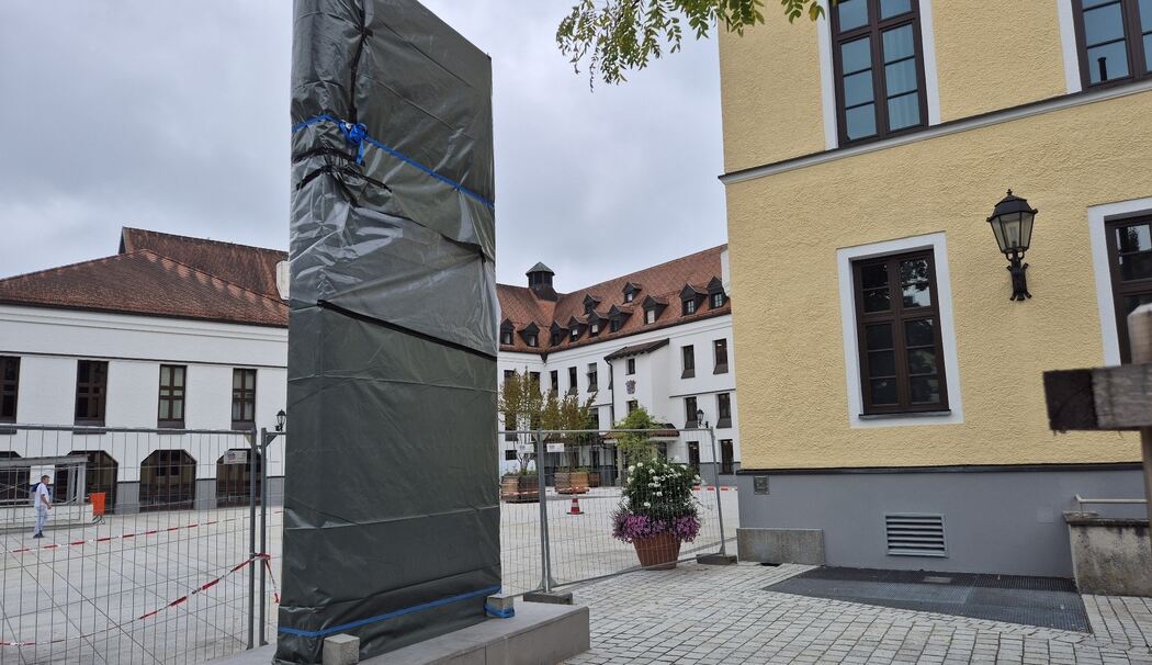 Die Aufstellung hat vor ein paar Tagen begonnen. Mittlerweile sind die Arbeiten schon weit fortgeschritten – und demnächst finden sie ihren Abschluss. Auf Anfrage des Traunsteiner Tagblatts berichtete Michael Reithmeier, der Pressesprecher im Landratsamt, dass der Monolith in der kommenden Woche fertiggestellt werde – womit dann auch die Enthüllung des Kunstwerks folgt. Planen bedecken zurzeit